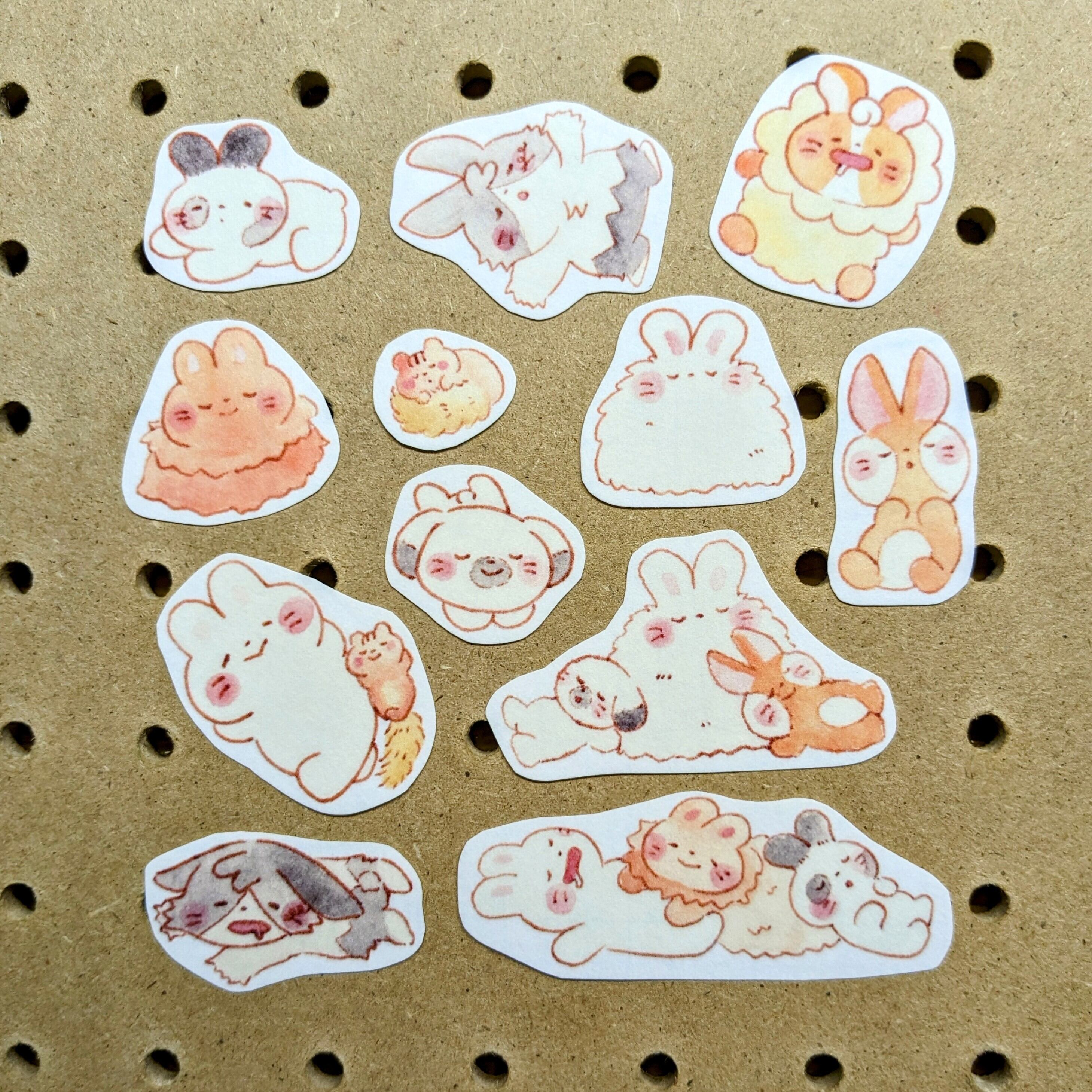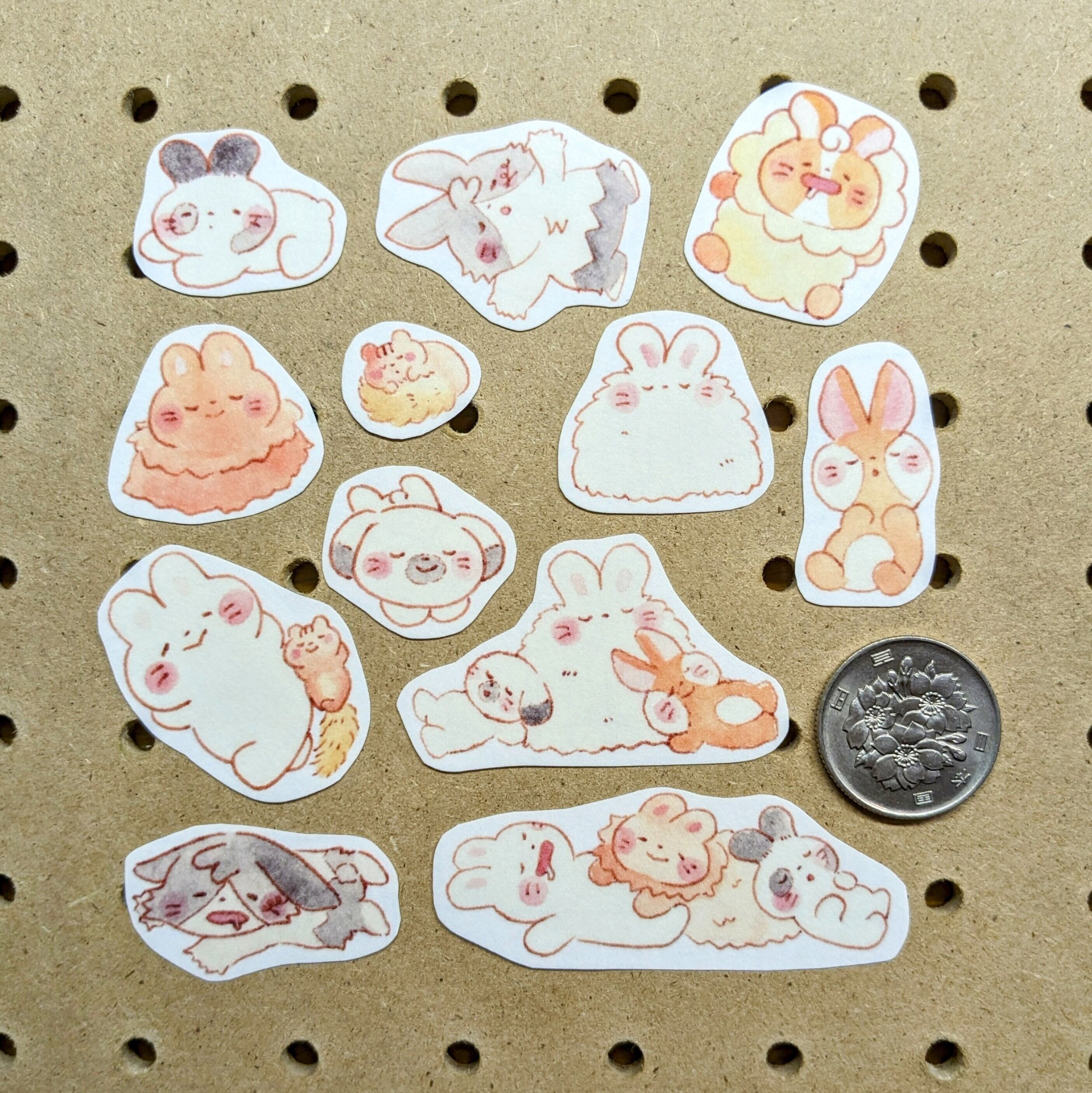 いろんな表情ですやすやとお昼寝するうさぎのシールです。